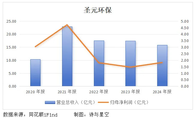 自上市以来,圣元环保的营收与利润一路下滑,可谓典型的“上市即巅峰”。