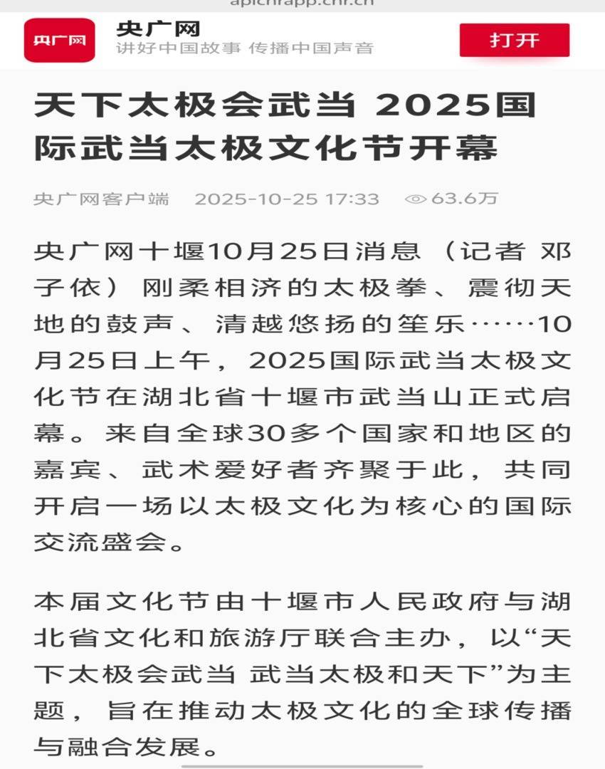 ▲央级媒体高频聚焦2025国际武当太极文化节开幕式