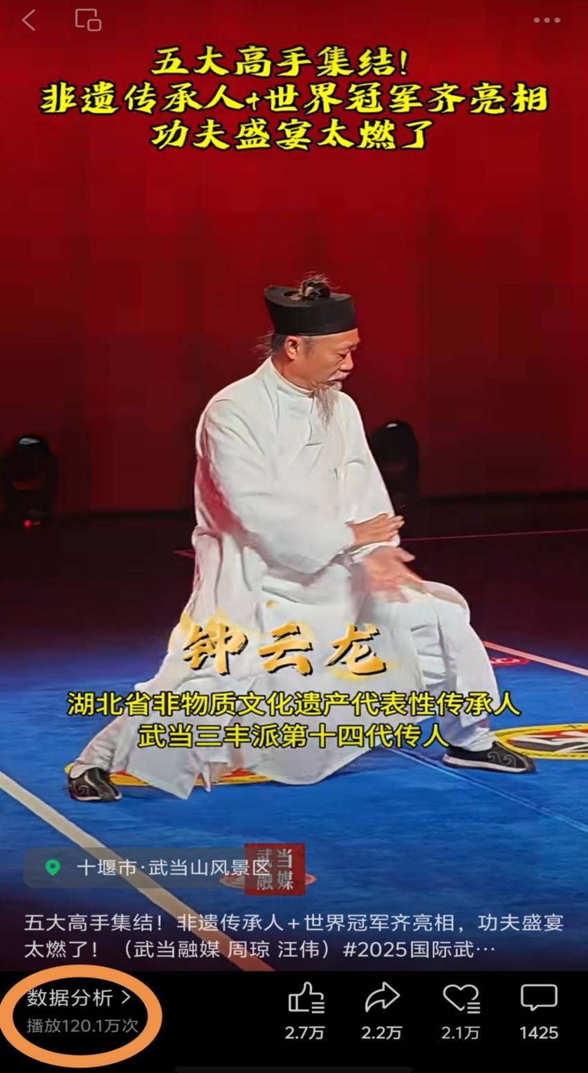 ▲由武当融媒摄制的《五大高手集结》短视频在微信视频号总浏览量超过120万次