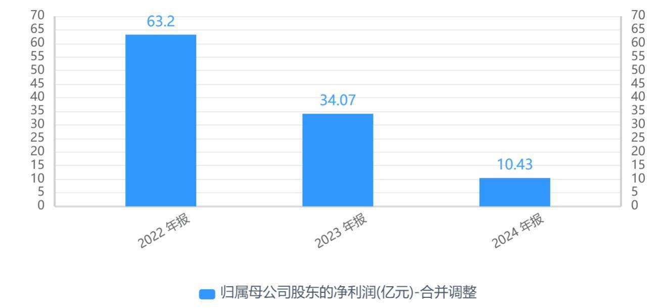 在业绩方面,永兴材料的净利润已连续两年“坐滑梯”,今年前三季度更是延续了下滑态势。2022年至2024年,公司归母净利润分别为63.20亿元、34.07亿元、10.43亿元。