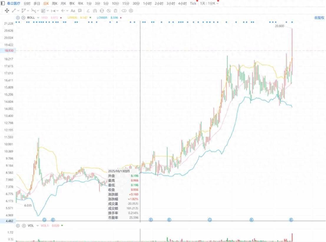 虽然春立医疗股价去年10月累跌13%,但之后的5个月内出现缓慢企稳回升,2024年11月至今年3月,股价走出月度“五连阳”累涨17.73%,但对应每个月成交量却显著降低,期间仅今年2月成交量突破1000万股,最小成交量则跌至493.85万股,反映出场内持筹者对春立医疗后续增长的一致看好态度。