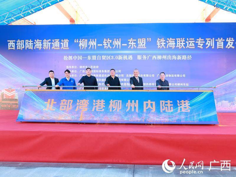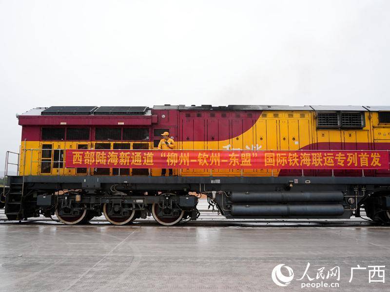 西部陆海新通道柳州—钦州—东盟铁海联运专列发车。